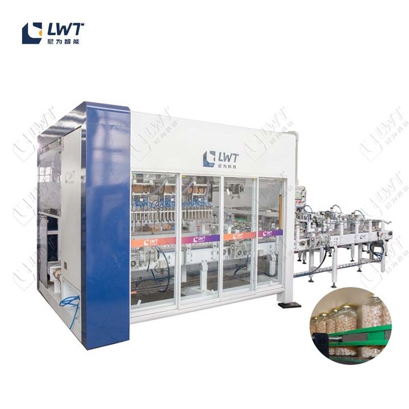 Máy này phù hợp với bình thủy tinh, lon sắt, bình nhựa, chai miệng lớn và v.v.,Bơm trong nước sốt đậu nành thịt, gà, cá v.v., bất kỳ loại sản phẩm rắn đóng hộp đo lường và điền.